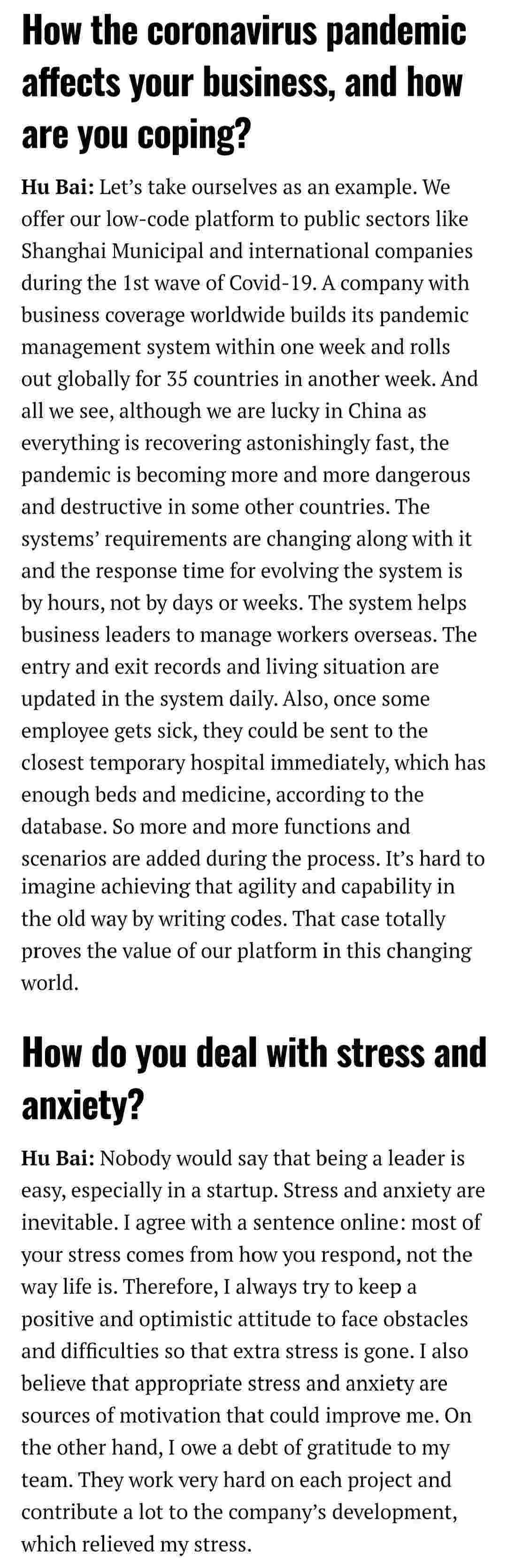 2021年年初,,,爱湃斯科技CEO胡柏受邀接受法媒Startup.info的专访,,,,与Startup info的读者分享了自己的创业经历、、、、以及低代码平台美团钱包商家版的创新之处。。。。